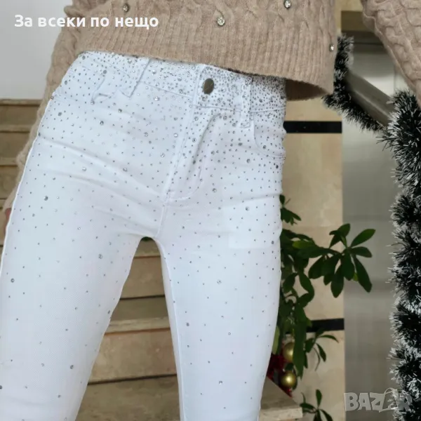 Дамски бели меки и еластични дънки с апликация от камъни → Обява 48351282
