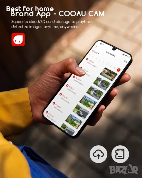 AES-256 криптиране на данни и IP65 водоустойчивост: Тази охранителна камера с батерия поддържа 32 ~ 128 GB SD карта и услуга за съхранение (7 дни безплатно). Криптирането на данни AES-256 гарантира, че процесът на повторно записване и предаване е криптиран, като гарантира, че вашите записи се пазят поверителни по време на предаване и съхранение. Тази външна охранителна камера е IP65 водоустойчива за повечето атмосферни условия, здрава и издръжлива.