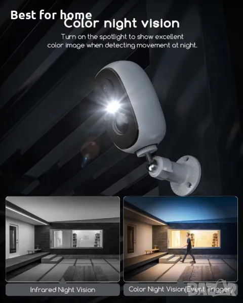 Двупосочно аудио и споделяне на екрана със семейства: Вградени ясни високоговорители и микрофони, тази външна безжична камера за сигурност поддържа отдалечена комуникация в реално време. Можете да говорите със семействата си, доставчик, домашни любимци, възрастни, деца или натрапници. Точно както си си у дома през цялото време. Можете също така да споделяте наблюдение на различни устройства едновременно, така че членовете на вашето семейство да поддържат безопасна среда заедно.