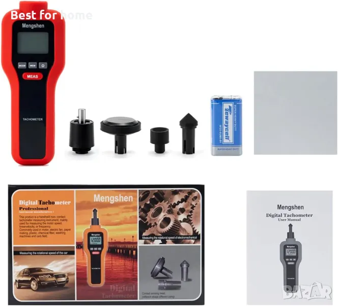 оборотомер, 2 в 1 Mengshen безконтактен и контактен измервател на скоростта на въртене на тахометър RPM