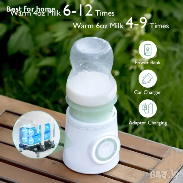 Преносимият нагревател за бутилки има функция за бързо нагряване, която затопля 4oz/120ml мляко до 98℉ само за 2 минути.