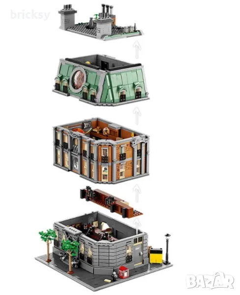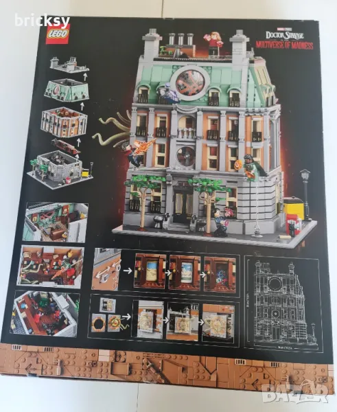 че този удовлетворяващ проект ще доставя голямо удоволствие дълго след приключване на конструирането. Въпреки че сетът е на Марвел, може безпроблемно да го включите във вашата колекция от модулни сгради. Съвместява се добре със следните сетове: 10255 Assembly Square; 10270 Bookshop; 10278 Police Station и 10297 Boutique Hotel. (снимки от 10 до 12) Размери на сградата - височина 32 см и ширина 31 см. Изпращане до офис на еконт, или лично предаване в град София в удобно за двете страни време и място.