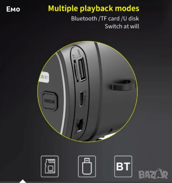 Соларен мегафон Безжичен, Bluetooth, Външен високоговорител - Гаранция 12 Месеца
