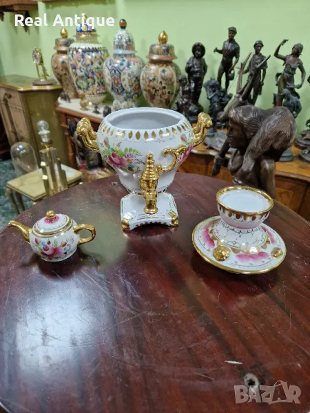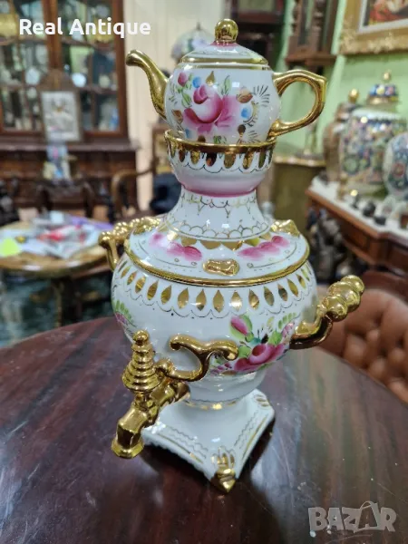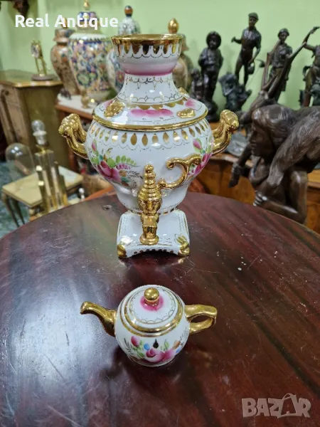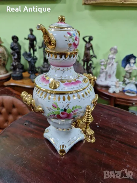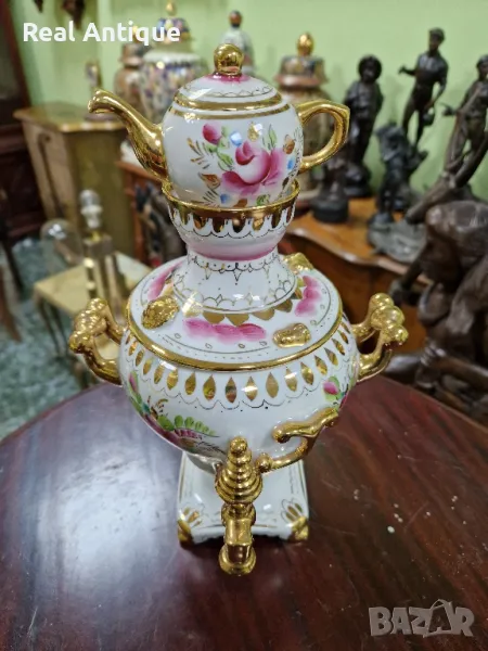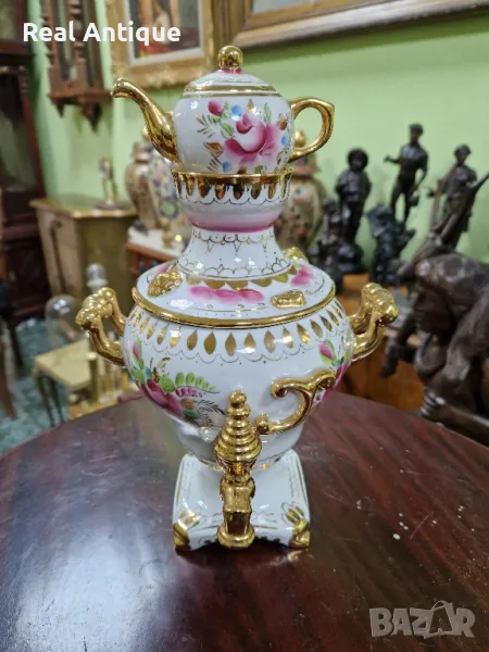 Продавам уникален рядък руски съветски порцеланов самовар Гжель в отлично колекционерско състояние без никакви забележки и липсващи страници наличните маркировки. Височина 27 см ширина 15 см. Чудесно допълнение към интериора на Вашия дом офис вила. Подходящ и за подарък. Работя с всички куриери. Отговарям бързо .