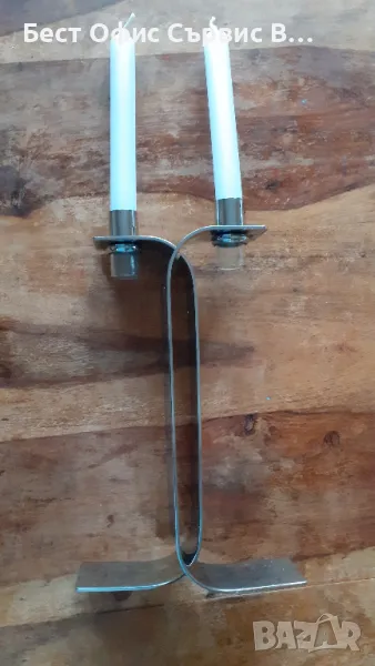 метален свещник дизайнерски, от Дания, стабилен масивен и лъскав хром метал → Обява 48354911