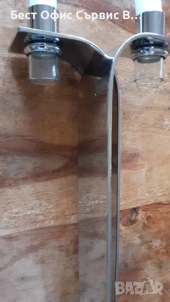 Продавам метален свещник дизайнерски, внесен от Дания, стабилен масивен и лъскав хром метал, за 2 свещи и стъклени цилиндрични къси декорации. От 2 части, които се сглобяват. На снимките е със свещи, които не са включени в цената. Чисто нов. Височина без свещите 30 см, Размер на основата на двете сглобени части 18х8,5 см. Всеки един крак е широк 5 см. Супер подарък в картонена кутия.