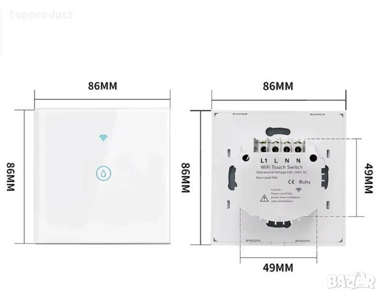 Смарт ключове за бойлер работещи с мобилното приложение Tuya. От приложението може да зададете програма за включване/изключване, таймер, включване/изключване от приложението и ключа.С контактно реле 40А достатъчно подсилено дори за бойлери до 8kw.Размерите са посочени на снимките.Налични в бяло и черно. Изпращаме с минус 27% от таксата на Еконт. Имате право да върнете закупената стока в рамките на 14 дни.Ключови думи: седмичен програматор за бойлер, WiFi ключ, Smart ключ.