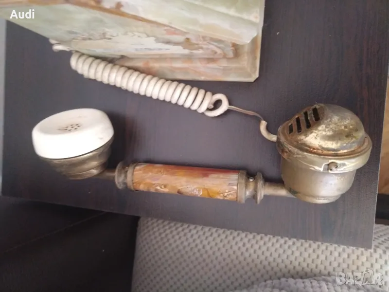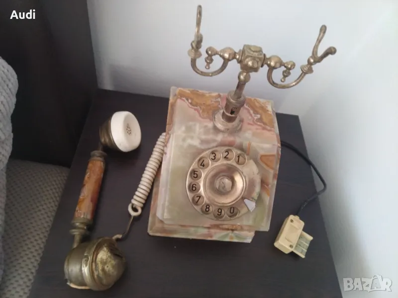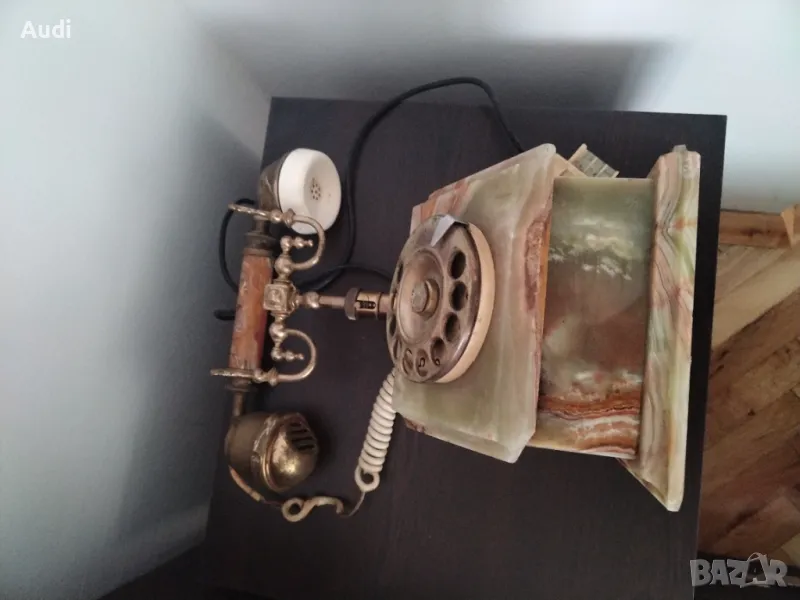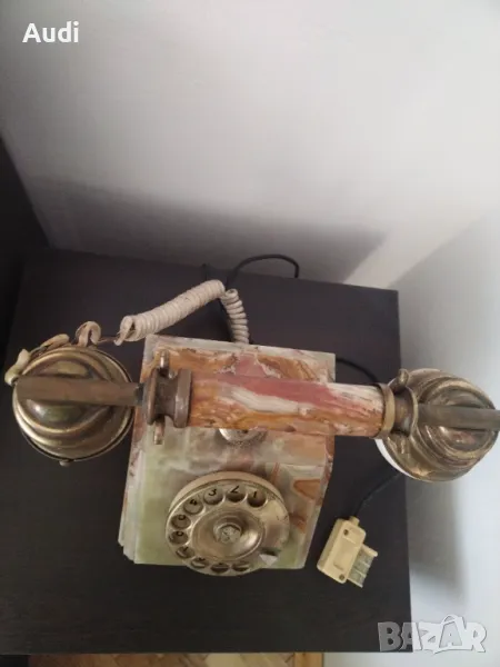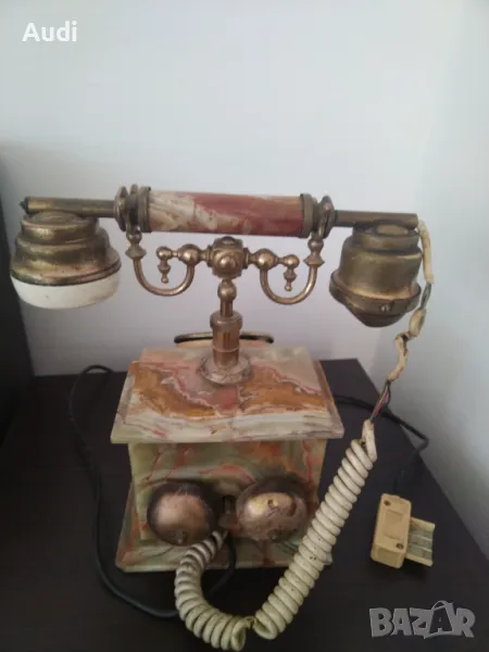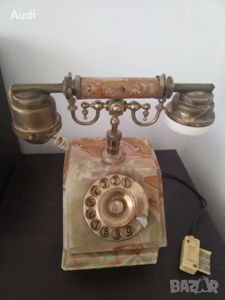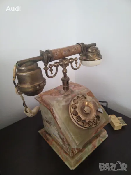 Старинен ретро винтидж домашен телефон изработен от ценни естествени натвриали:бронз и мрамор, оникс, алабастър и месинг,