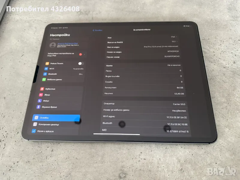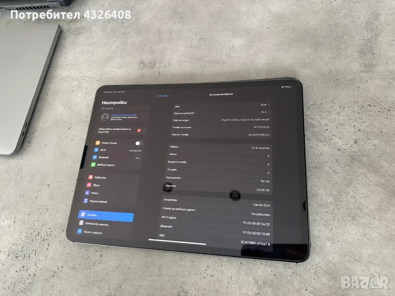 Дисплей: 12.9” (32.76 см) QSXGA (2732 x 2048) Retina IPS сензорен с LED подсветка
