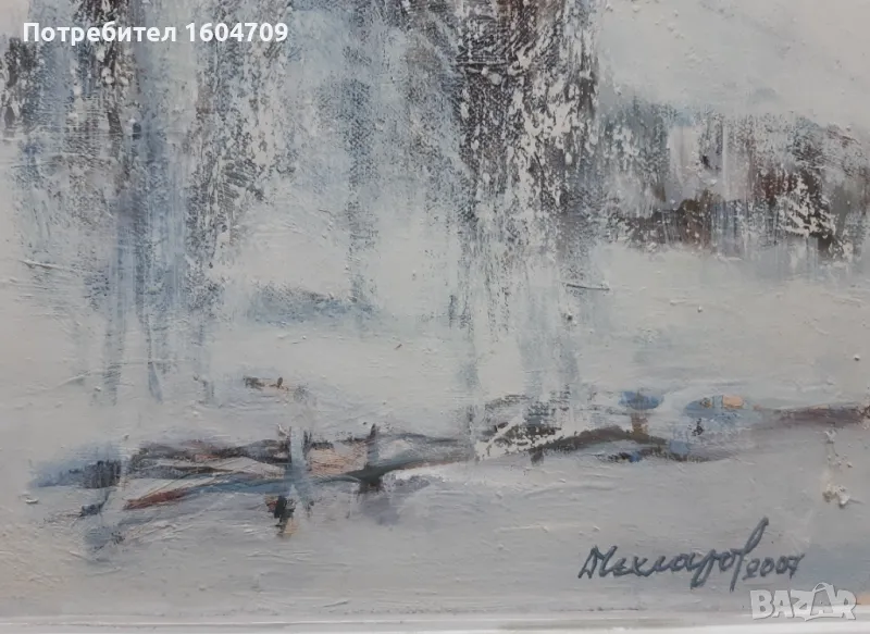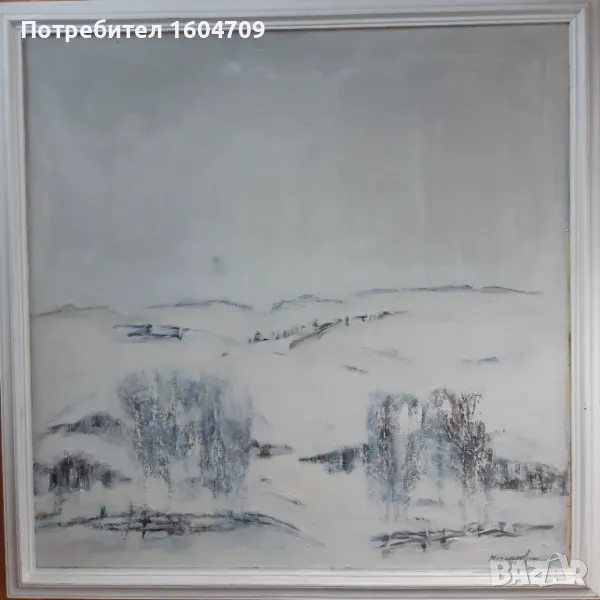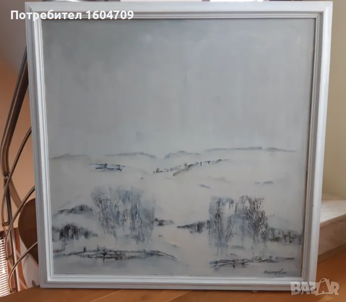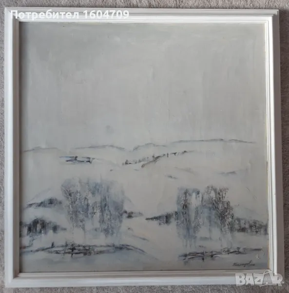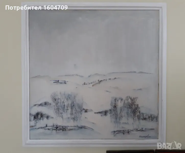 Картина " Зимен пейзаж" на Димитър Чехларов. Маслени бои на платно. Размер без рамка 80/80см. Подписана и датирана - 2007г. Оригинална дървена рамка.