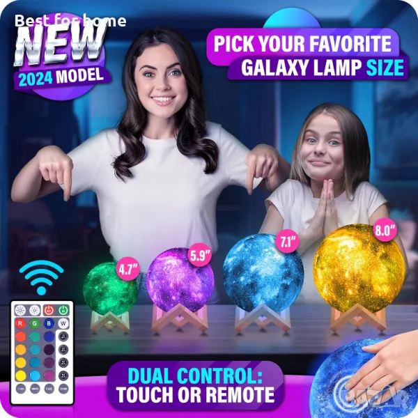 Изживейте космическата магия у дома: Превърнете всяка стая в осветена от звезди галактика с нашата Galaxy Lamp, създавайки завладяваща, небесна атмосфера, която разпалва въображението. Предлага се в размери от 4,7" до 8,0", намерете идеалното място за вашето пространство и го управлявайте по свой начин - докосване или дистанционно.