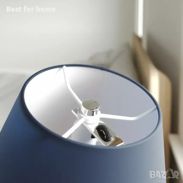 Тази настолна лампа се характеризира с ясен, традиционен дизайнерски език от една страна, но и с необичайни детайли от друга. Например, има лъскав хромиран пръстен, който държи черния текстилен кабел и води до дъното на абажура. Леко въртящият се абажур нежно блокира околното осветление и позволява на светлината да излиза по-насочено надолу, което създава много уютно осветление за жилищни и спални помещения. абажурът, макар и не много разпространен, привлича вниманието на настолната лампа и е изработен от фина материя, а корпусът е изработен от висококачествена дървесина и е красиво обработен и подчертава естествеността на цялостната визия. Почти бихте могли да си помислите, че тази лампа е преосмисляне на скандинавския комфорт!