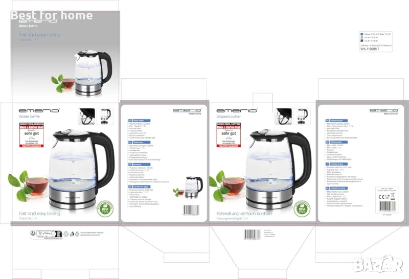 Победител в стойност | Чайник от боросиликатно стъкло за абсолютна неутралност на вкуса и максимална термоустойчивост
