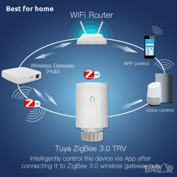 ZigBee 3.0 Smart Radiator Actuator Програмируем термостатичен радиатор Клапан Температурен контролер Гласово управление Alexa 1.Smart Tuya ZigBee Радиатор Задействащ термостат: Нов мини дизайн с прост и ясен дисплей на LCD върху тялото, термостатът на радиатора е с LCD цифров дисплей екран AA батерии, захранвани, който е специален клапан, използващ съвместно с отопление радиатор. Успешно зададена температура на закрито, използвана главно в системата за отопление на пода за контрол на затварянето и отварянето на тръбата.
