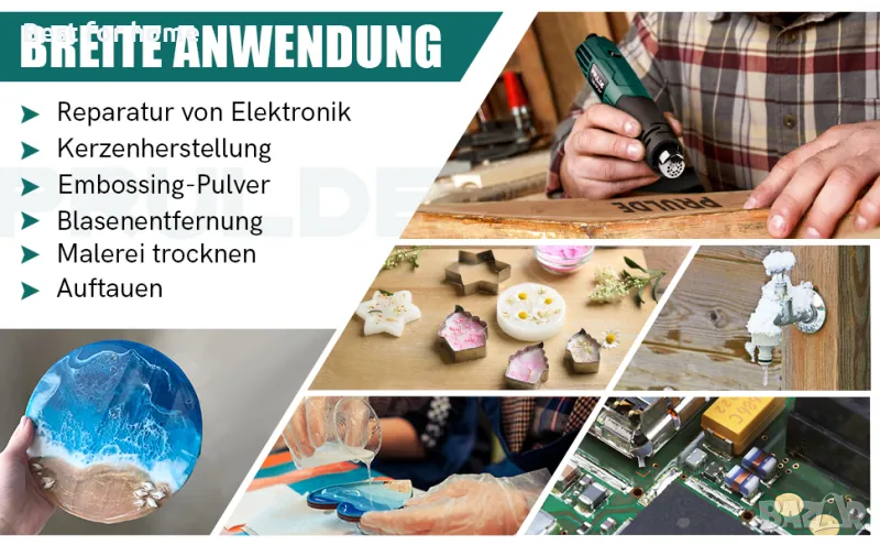 Широко приложение: тази сушилня с горещ въздух се доставя с концентрираща дюза за насочване на топлинния поток към точната повърхност, което е идеално за свиване на маркучи, огъване на PVC тръби, ремонт на електроника, винилови опаковки, щамповане, както и за други цели за сушене и размразяване.