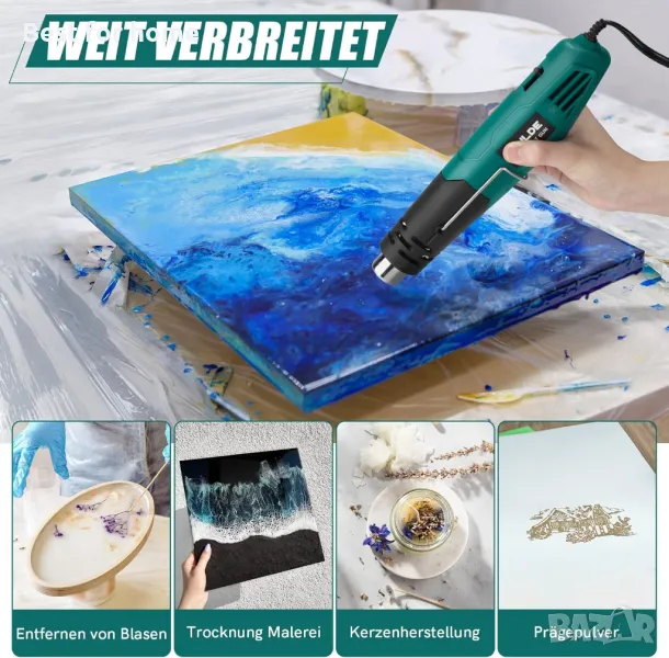 Бързо загряващ вентилатор с горещ въздух с 2 температурни настройки за занаяти от акрилна смола, занаяти, епоксидна смола, термосвиваемо фолио