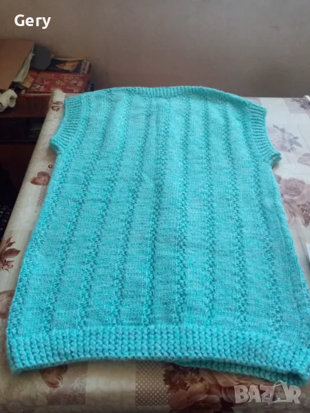 Дамско елече ръчно плетиво, ново, гръдна обиколка 92 см, дължина 65 см, материята е памучна прежда.