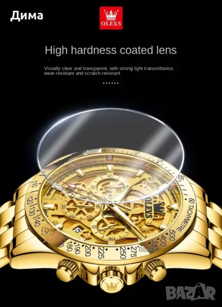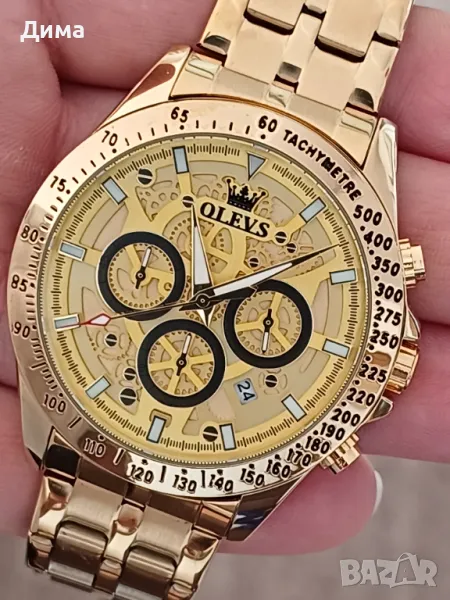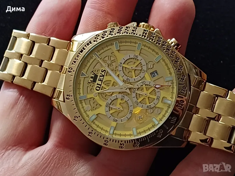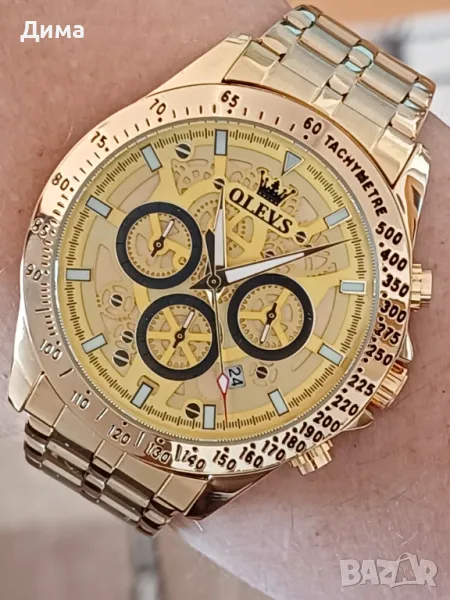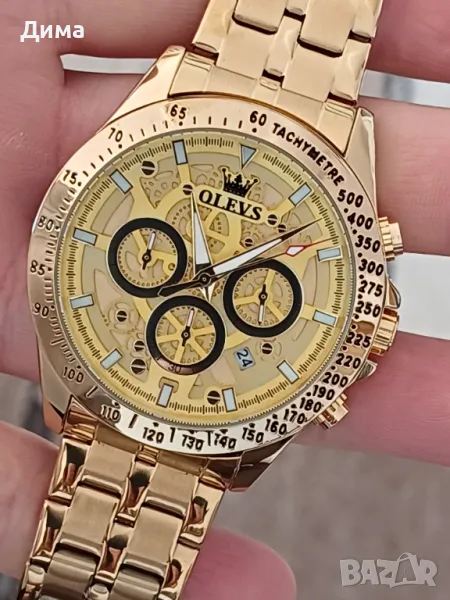 OLEVS Хронограф Многофункционален Кварц,Скелетен,Hollow Out,HD Светещ,3 АТМ,Автоматична дата,Ден