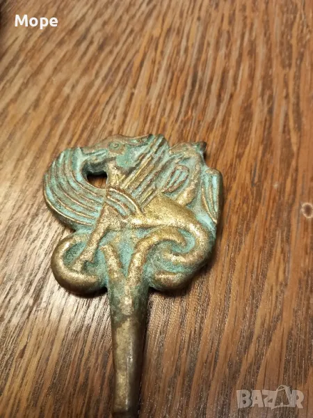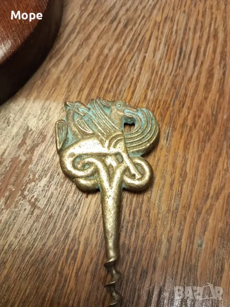 Месингов тирбушон с дължина 11 см. и ширина 5 см. в отлично състояние без забележки с патина по дръжката. Изпращам с Еконт и Спиди, за София предпочитам лично предаване.