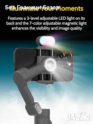Нов Компактен стабилизатор за iPhone Android Сгъваем геймбъл RGB осветление