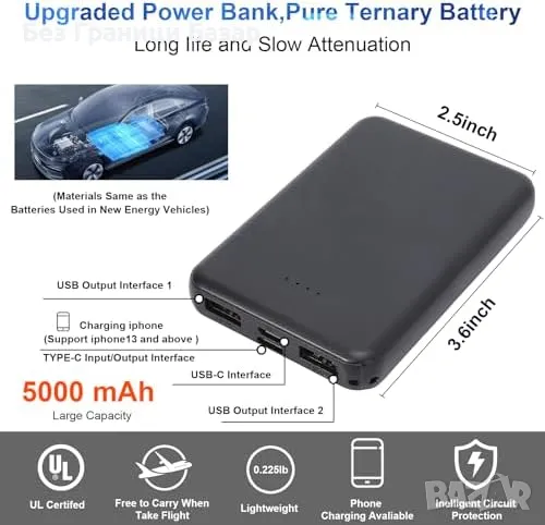 Включена 5000mAh батерия с дълъг живот, лека и компактна за лесно пренасяне.