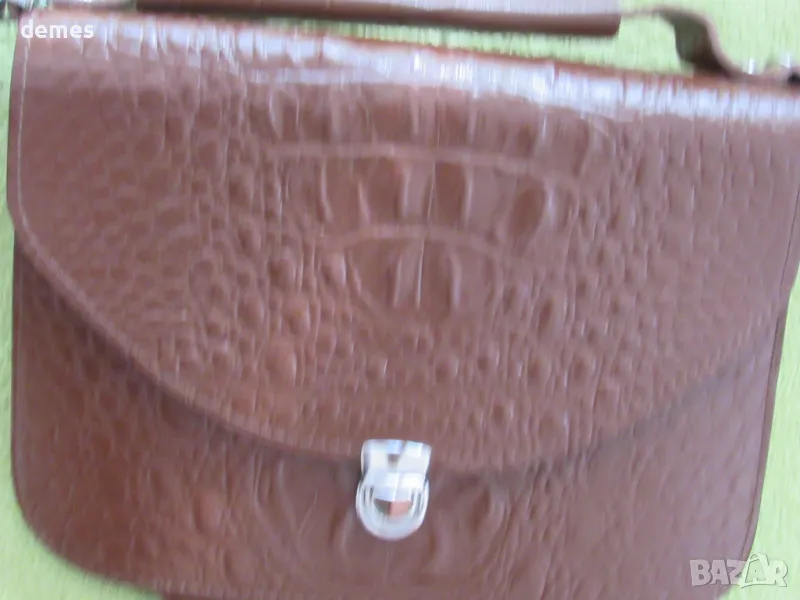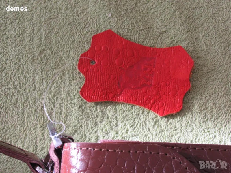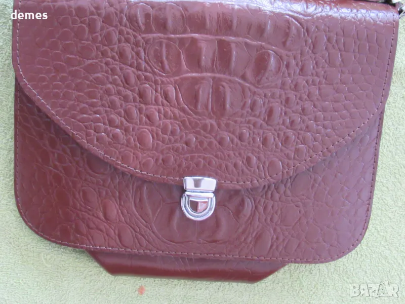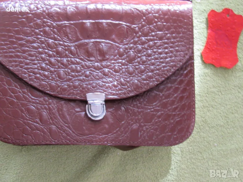 Имитира крокодилска кожа, но реално е телешка кожа.
