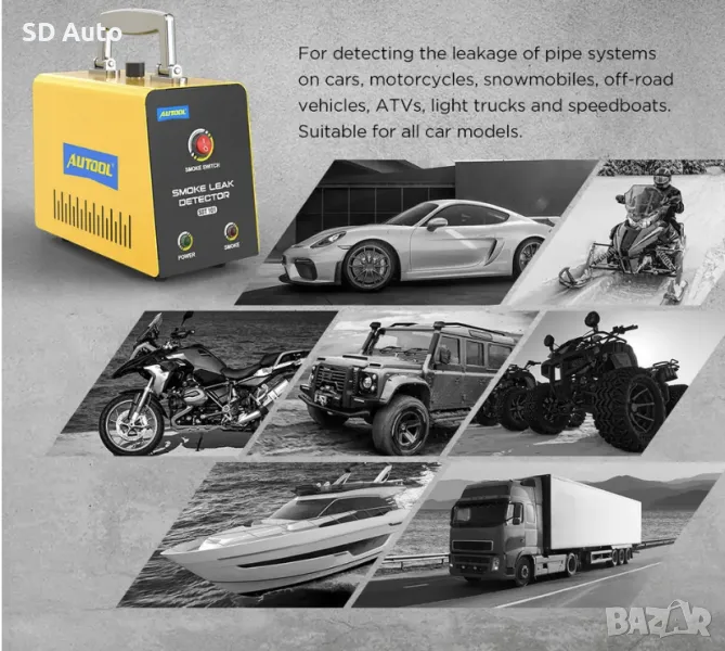 ***AUTOOL SDT101 е професионален инструмент за откриване на течове. Това ще ни помогне бързо и точно да позиционираме течове на автомобили, мотоциклети по тръбопроводната система, като например: тест на всмукателната система, тест на изпускателната система, тест на уплътненията на автомобила, тест на горивната система,вакумна система,турбопътищата,климатична система.
