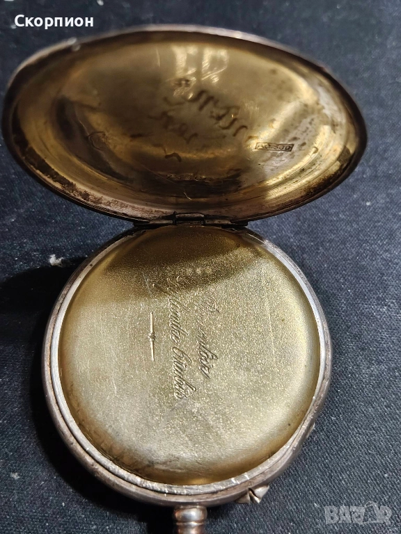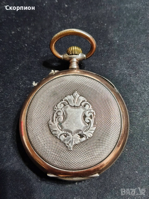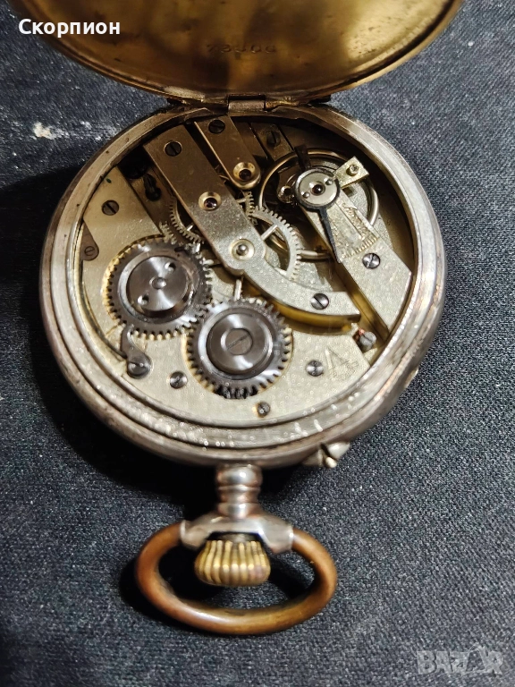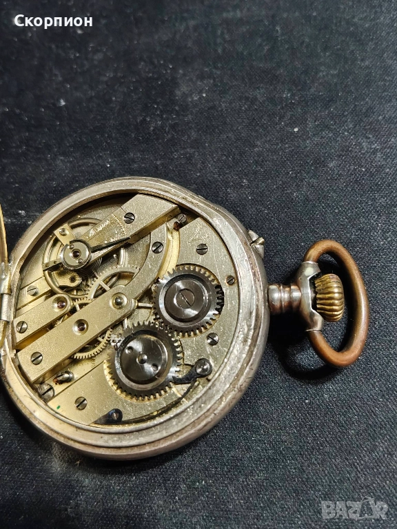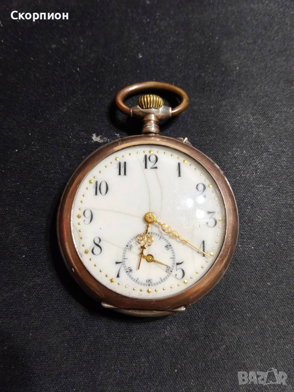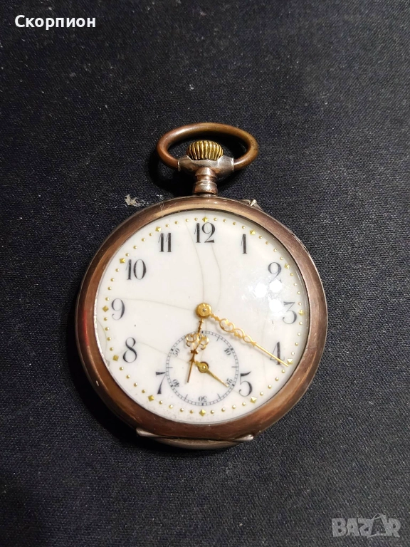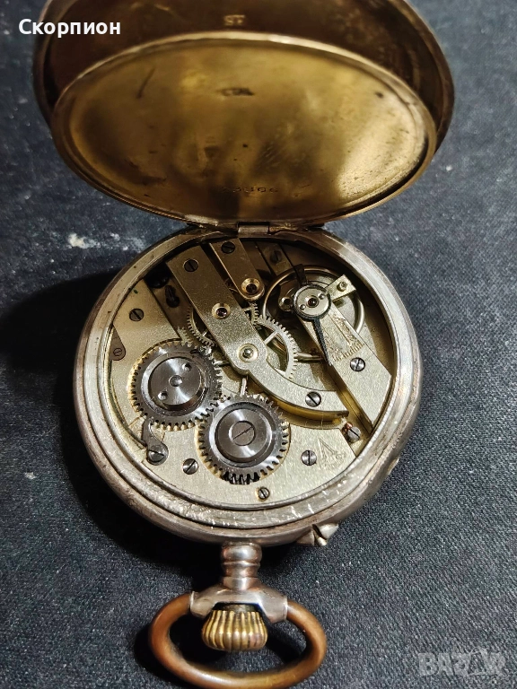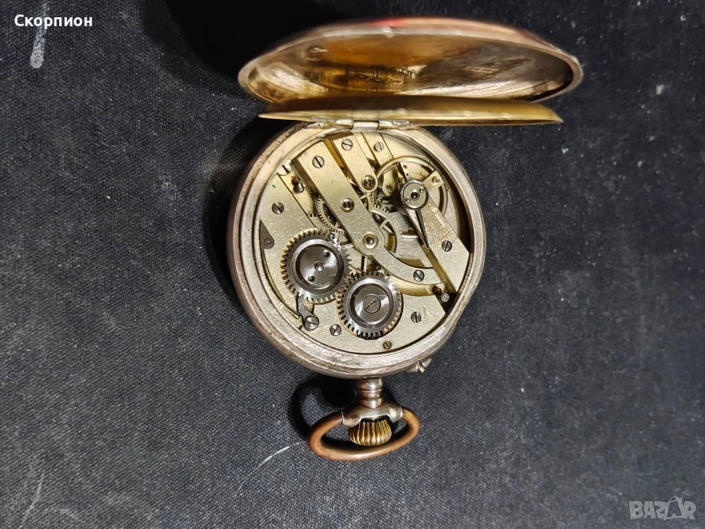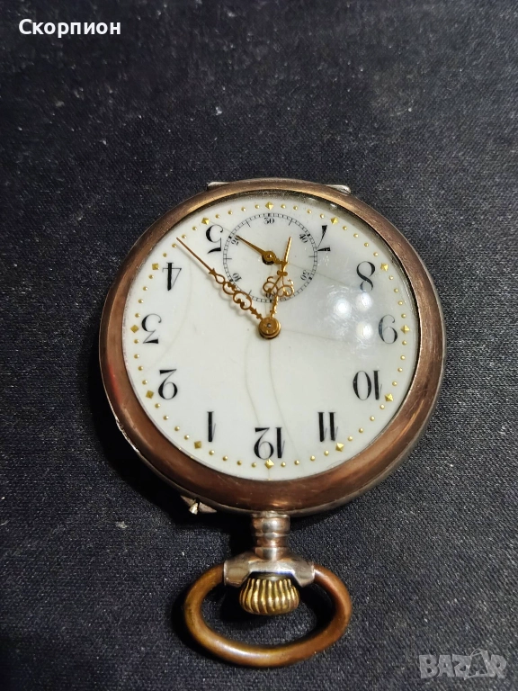 Швейцарски СРЕБЪРЕН джобен часовник 1905 г. с позлата - 10 РУБИНА ПРОМОЦИЯ → Обява 48361909