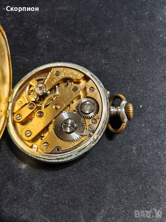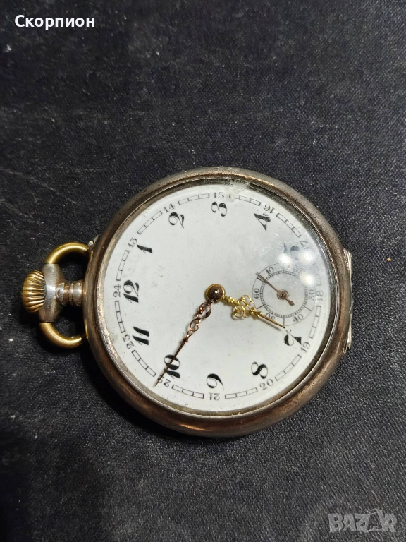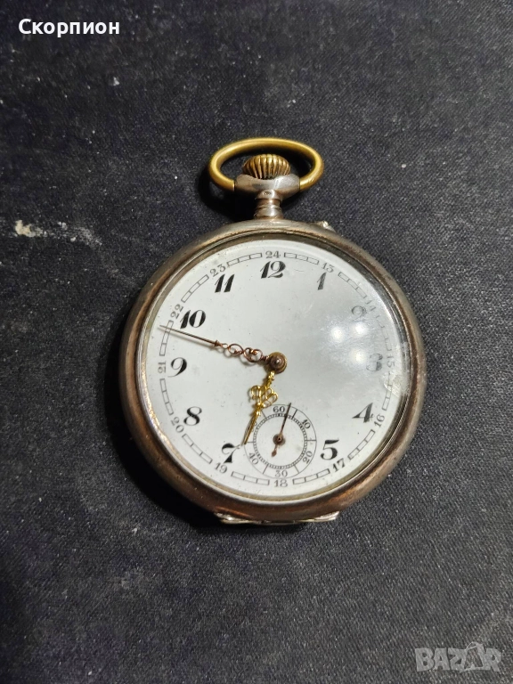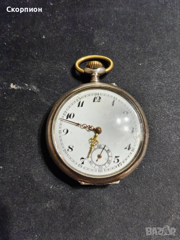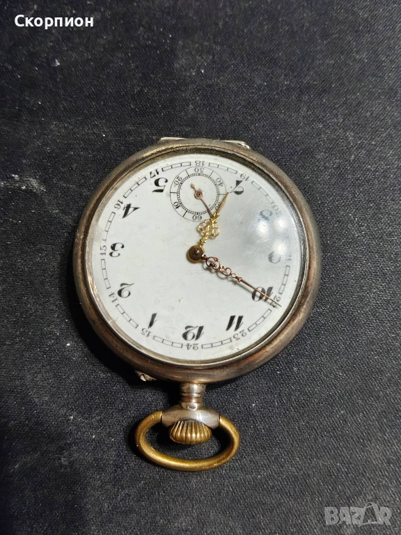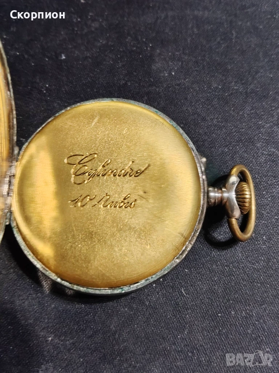 Швейцарски джобен часовник с посребрени капаци 1925г. - 10 РУБИНА → Обява 48361931