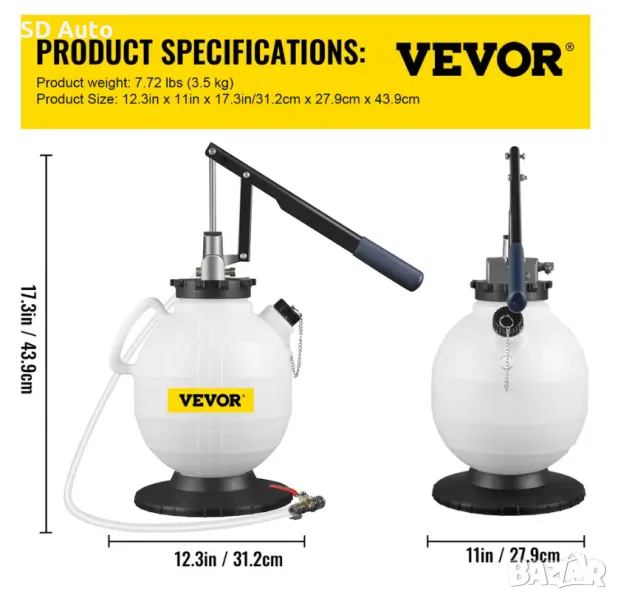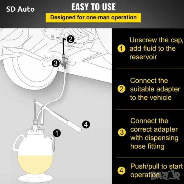 *** Пълнител за трансмисионно масло. Ръчната помпа VEVOR има голям капацитет от 7,5 л. Тази маслена помпа осигурява лесен начин за извършване на промивки на трансмисията и смяна на течности, за да поддържате вашата автоматична и ръчна трансмисия безпроблемна.