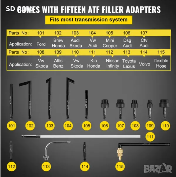 Широка съвместимост: Нашият пълнител за масло се доставя с 15 общи адаптера, които пасват на различни автомобили, включително добре познати автомобили като BMW, Porsche, VW, Audi и много други.