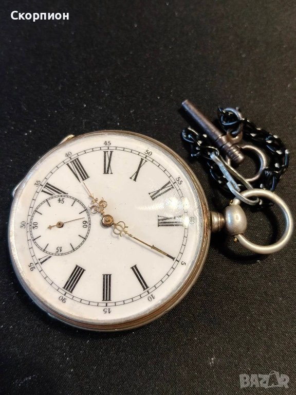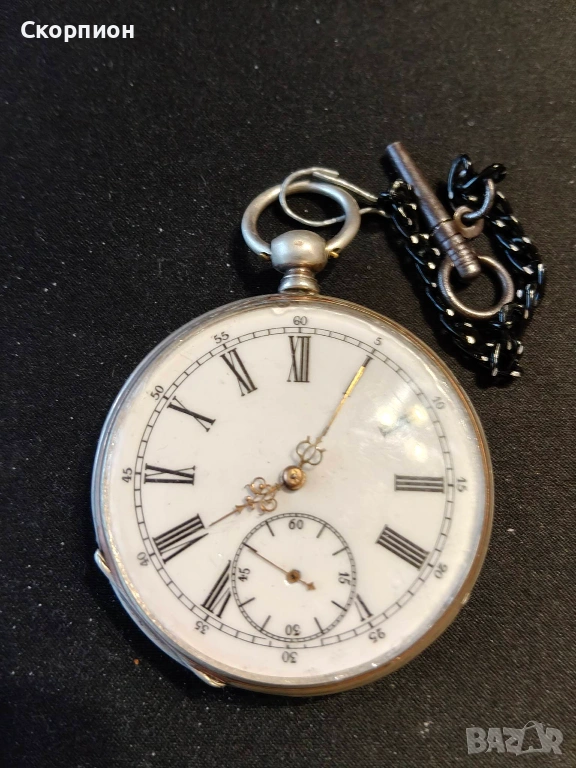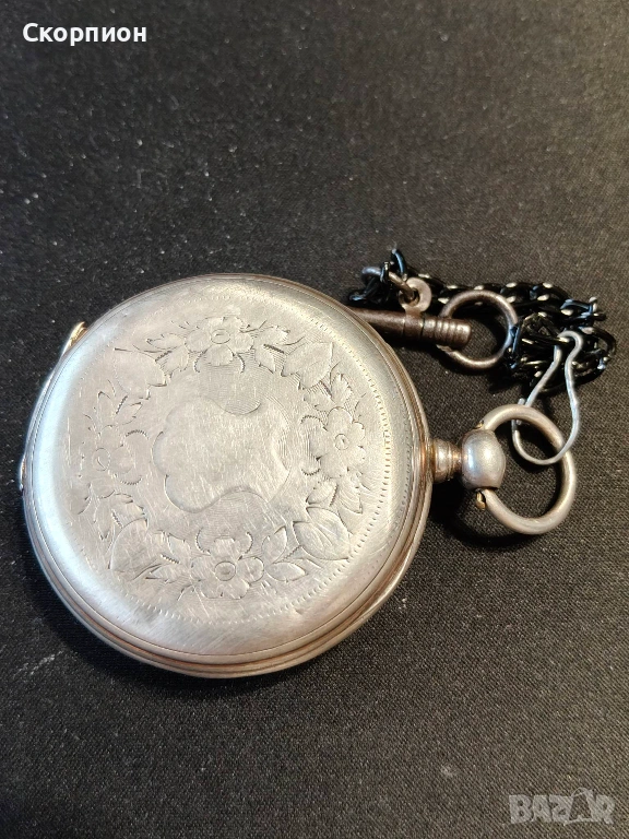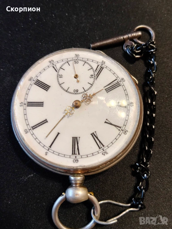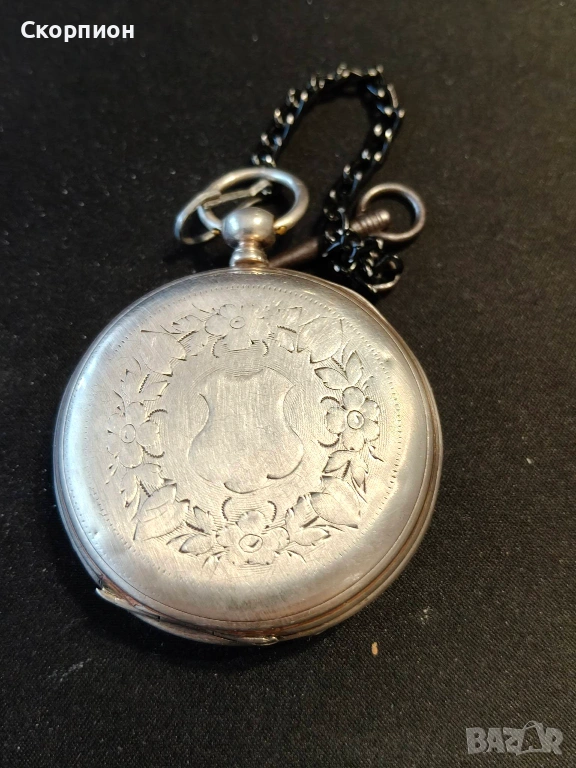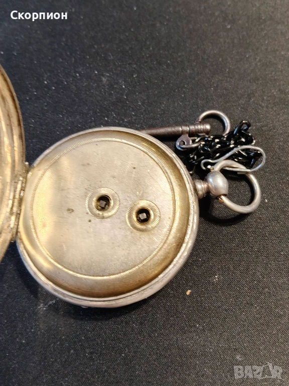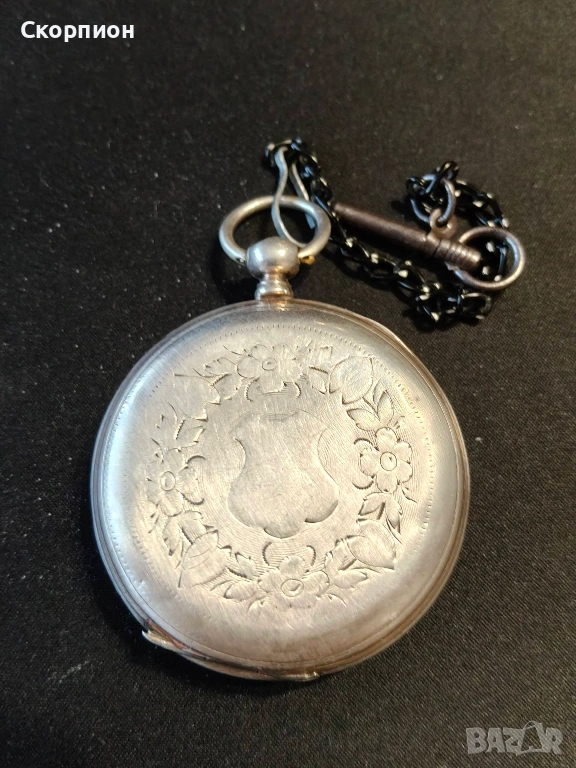Швейцарски СРЕБЪРЕН джобен часовник 1900г. с ключе - 10 РУБИНА ПРОМОЦИЯ → Обява 48362081