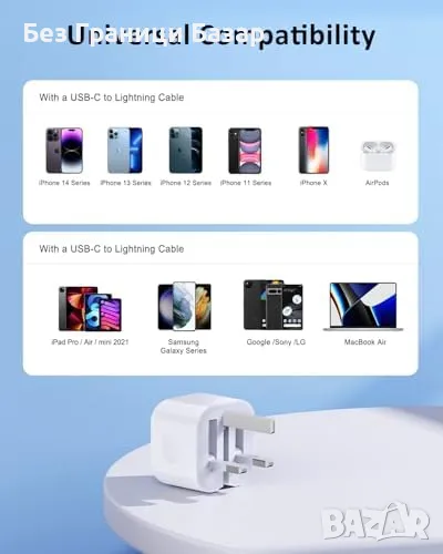 Супер бързо зареждане: USB C зарядно с 20W мощност и PD 3.0 технология за зареждане 3 пъти по-бързо от стандартно зарядно.