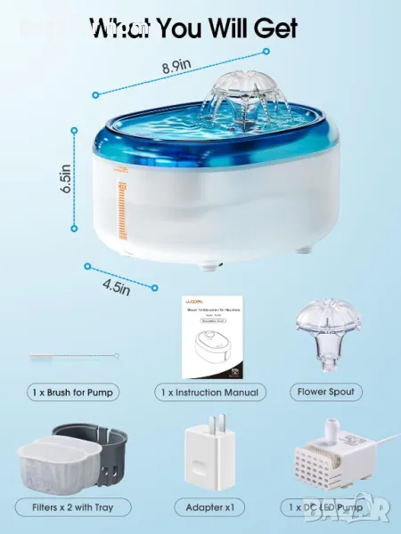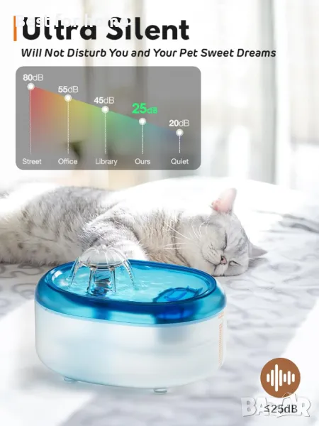 6-слойна филтърна система: Пригответе се да бъдете изумени от нашата авангардна 6-слойна система за филтриране! Активен въглен, памук, йонообменна смола, гранули, носещи сребро, и два слоя дебел нетъкан текстил обединяват усилията си, за да създадат воден рай. С по-чиста и свежа вода вашите домашни любимци ще се насладят на лукса. Не става въпрос само за утоляване на жаждата им; това е освежаващ оазис за вашите домашни любимци!