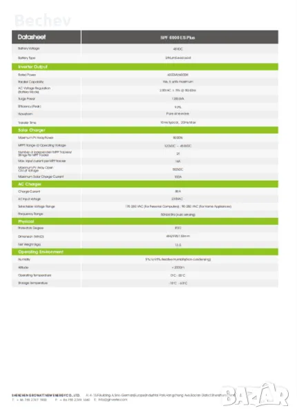 Многофункционален, монофазен, хибриден инвертор Growatt SPF 6000 ES Plus. Работи с различни брандове нисковолтови батерии. Различни режими на работа. Възможност за работа и без батерия. Не връща енергия в мрежата! Допълнителен вход за генратор! Изключително виоско качеството на много изгодна цена!