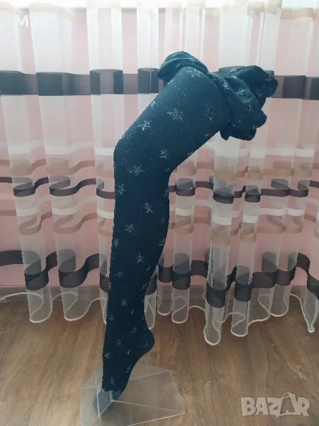 Плътен еластичен чорапогащник на звезди със сребристи брокатени нишки Нов без опаковка