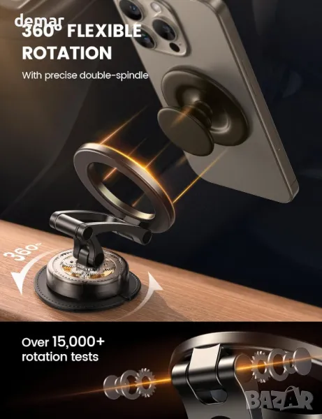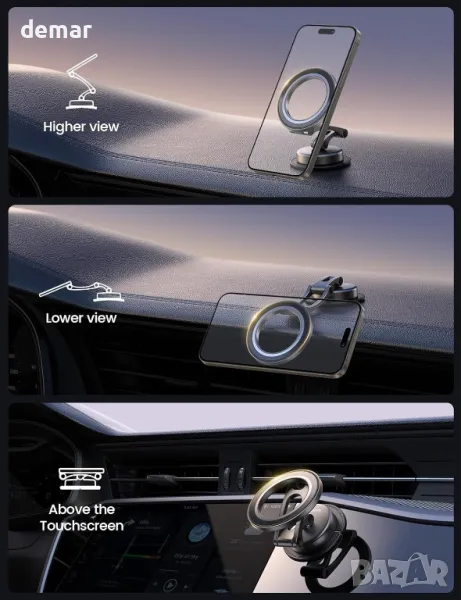 Тази стойка за телефон за кола разполага с адаптивно уплътнение от TPU за съвместимост с над 95% от извитите централни конзоли и се закрепва здраво с помощта на усъвършенствано 3M лепило, дори при екстремни метеорологични условия. Основата му за въртене на 360° и дизайнът с три оси позволяват гъвкави настройки на ъгъла, двойни режими на използване и сгъваема структура за подредена настройка. Изработен от издръжлива алуминиева сплав, той издържа над 15 000 завъртания, осигурявайки стабилност и устойчивост на износване по време на шофиране. Оборудван с 20 магнита N52, той здраво държи телефоните дори при остри завои или неравни пътища и поддържа бърза работа без ръце. Съвместим с набор от iPhone и калъфи MagSafe, той също така включва метален пръстен за немагнитни устройства.