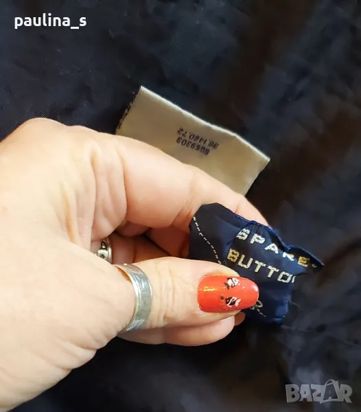 Брандирани копчета, цветът е "Графит"(има и резервно копче в вшито в торбичка в хастара).