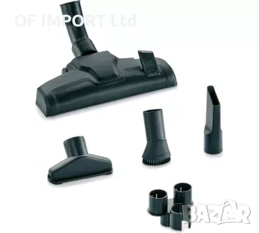 - Включва превключваема четка за под (твърд под/килим), инструмент за тапицерия, накрайник за тапицерия, четка за мебели, държач за накрайник за процепи, накрайник за тапицерия и четка за мебели