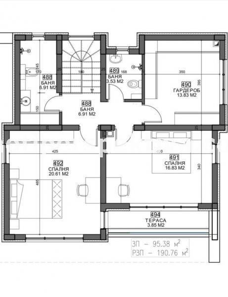 2 етаж- три спални, две бани, тераса.