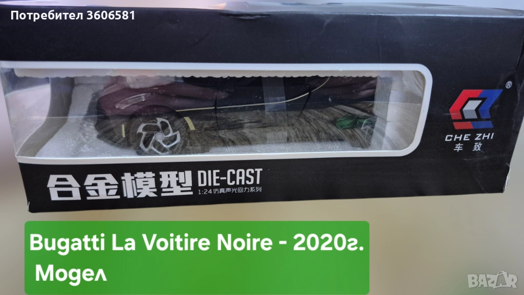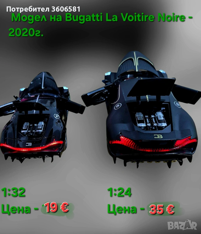1. Bugatti La Voiture Noire 2020г мащаб 1:32 /15,5 д х 7 ш х 4 в СМ //дължина, ширина , височина в см/ Цена - 19€