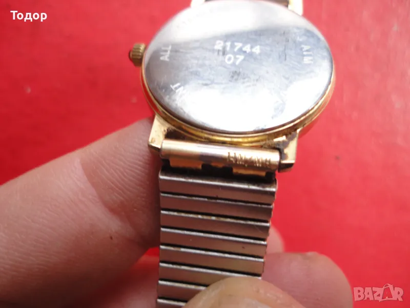 Диаметър без корона 28 мм с корона 80 мм Ширина при лъговете 14 мм Страхотна оригинална позлатен верижка с маркировки Сменена батерия Работи точно