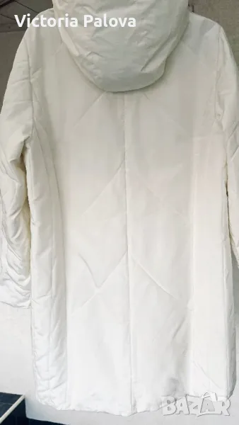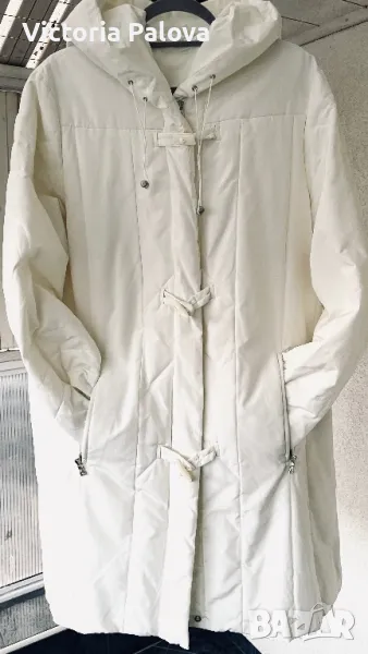 Якето е топло, леко, гладко, комфортно, много красив актуален цвят, лесно се поддържа ( машинно пране), обла качулка с връвчици за регулиране, вътрешни джобове с цип. Рамо - 46см, ГО - 62см, дължина - 93,5см, ръкав -63см ( вътре е с трикотажен маншет).