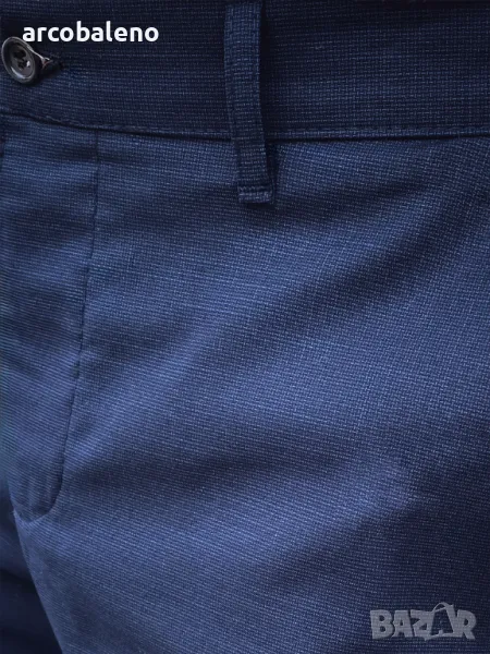 Класика с модерен привкус - тези тъмносини панталони с фина шарка на каре са задължителни в гардероба на всеки мъж. Перфектен за различни поводи, от бизнес срещи до случайни излизания с приятели. Висококачествената материя осигурява комфорт при носене, а прецизното покритие придава елегантност. Съчетайте ги с бяла риза и модерни обувки за стилна и елегантна визия. Инвестирайте в панталон, който ще подчертае вашия уникален стил!