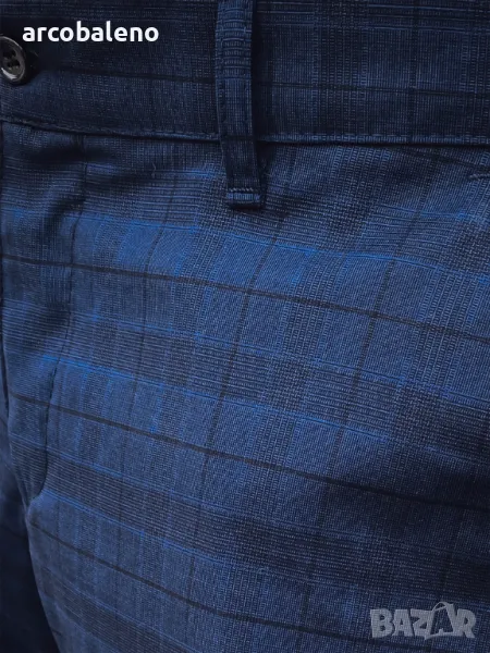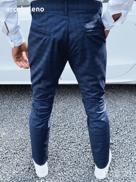 Елегантен тъмносин панталон на каре, идеален за официални поводи и ежедневен стил. Изработени от висококачествен материал, осигуряват комфорт при носене през целия ден. Класическата кройка и модерен дизайн правят този панталон чудесен избор както за работа, така и за социални събирания. Детайлът под формата на фина мрежа им придава уникален характер. Перфектен в комбинация с бели кецове или елегантни обувки.