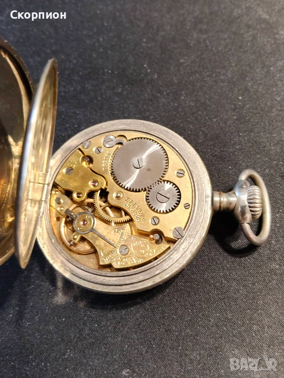 Швейцарски джобен часовник с посребрени капаци - BREVET DEPOSE - ПРОМОЦИЯ → Обява 48366714