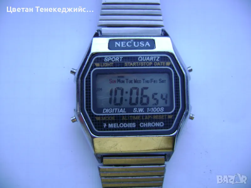 4.Ретро кварцов часовник NEC със 7 мелодии.Работи точно.Хронометър,аларма с мелодии,посветка.Оригинална метална верижка.-30лв.Продаден.