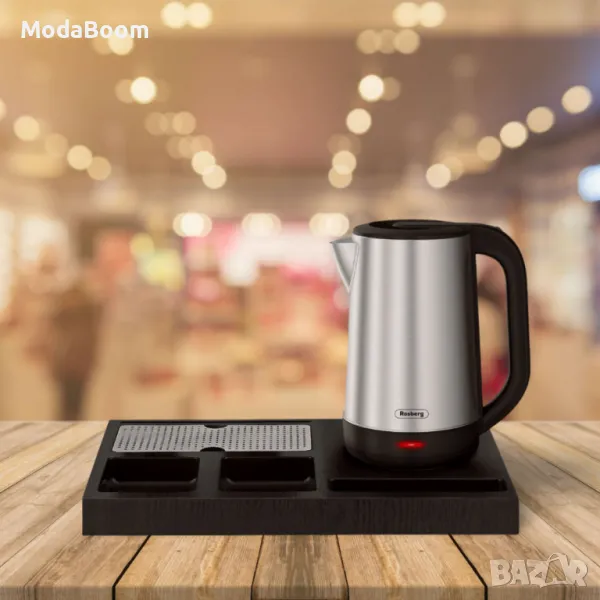 Комплект електрическа кана Rosberg с ПОДНОС за кафе и чай