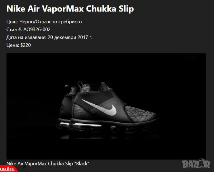 Nike Air VaporMax Chukka Slip номер по етикет 42 .