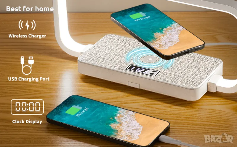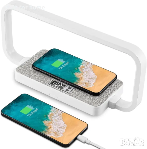 ??Възможност за двойно зареждане? Оборудван както с основа за безжично зареждане, така и с USB порт, нашата лампа ви позволява да зареждате два телефона едновременно, като гарантира, че ще останете свързани и заредени през целия ден. Освен това идва със захранващ адаптер за оптимална работа.